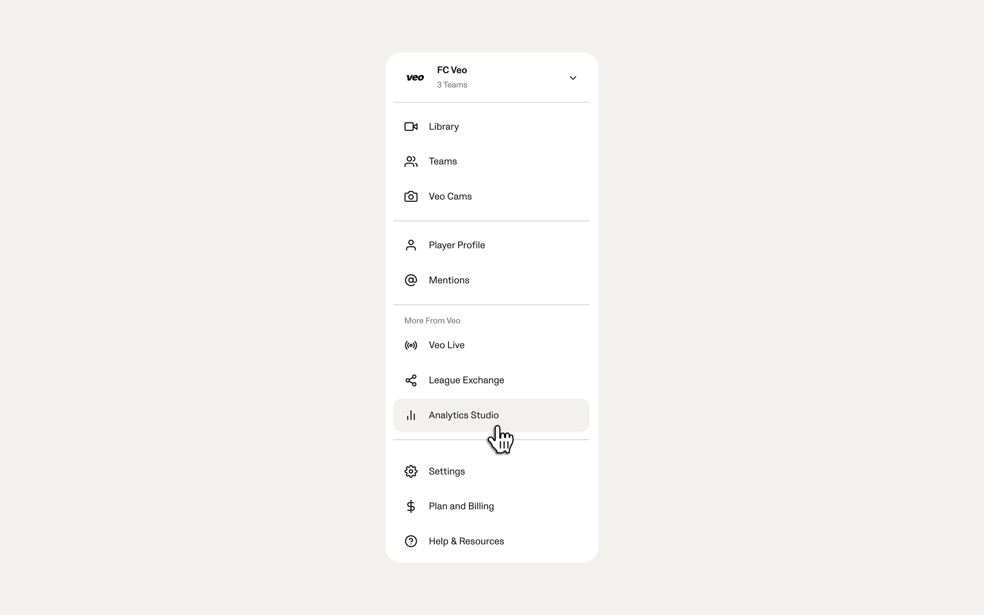 For information on Analytics Studio, please visit the Veo Help Center.