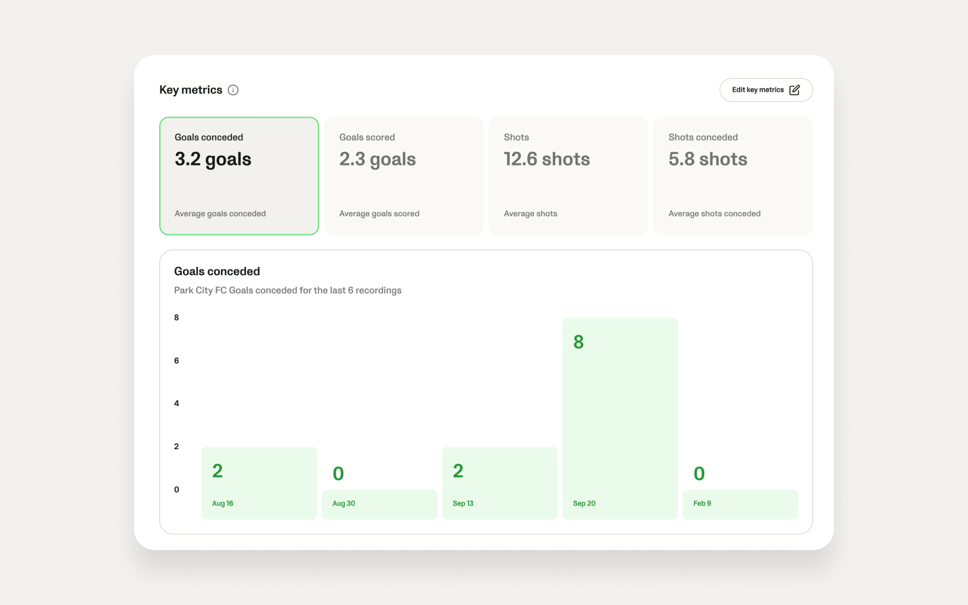 In Analytics Studio, coaches and admins can display and set up to 4 event metrics at once and view them across multiple matches to track trends over time, including: